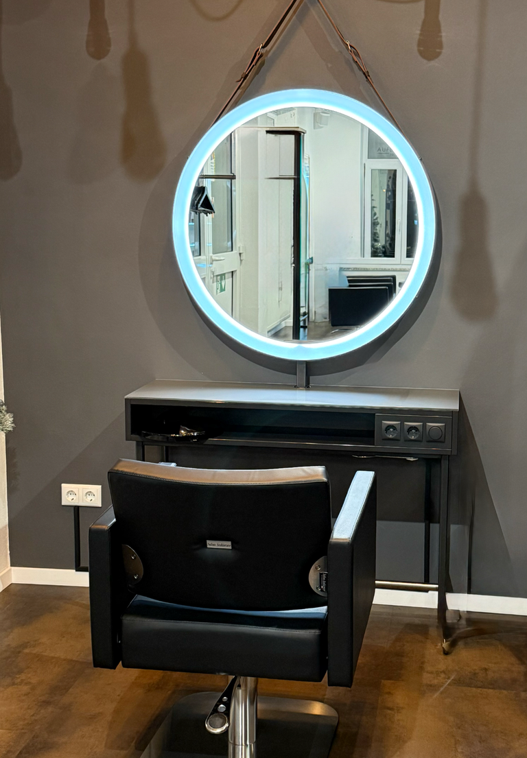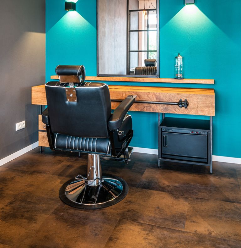 Un unserem eigens gestalteten Männerbereich verbinden sich Stil, Komfort und gepflegte Männlichkeit. Der hochwertige Barberstuhl sorgt für entspanntes Sitzen, während wir uns mit Präzision um Schnitt, Bart und Styling kümmern. Ruhige Farben, klare Linien und ein maskulines Ambiente machen diesen Platz zu einer kleinen Auszeit nur für Herren.