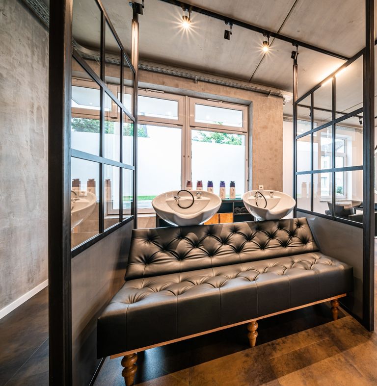 Auf unserer handgefertigten Waschbank wird jede Haarwäsche zu einem echten Wohlfühlmoment. Bequemer Sitzkomfort, wohltuende Kopfmassagen und hochwertige Pflegeprodukte sorgen dafür, dass Sie sich rundum entspannen und verwöhnen lassen können.